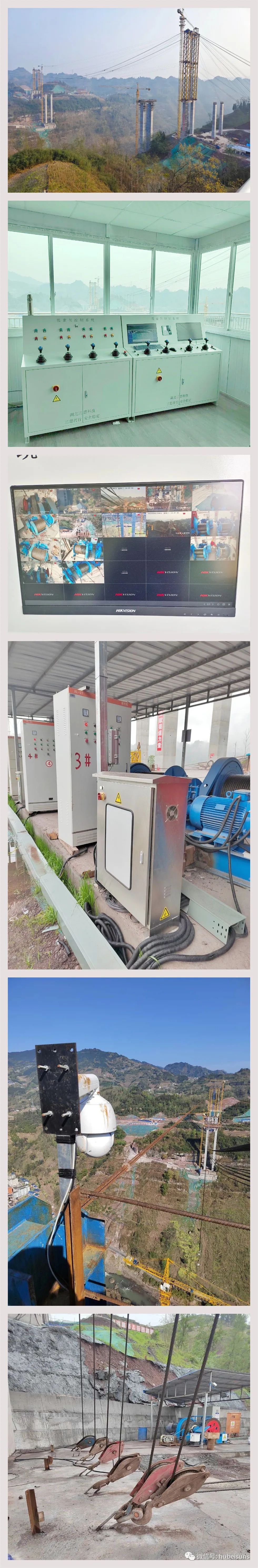 3月末,在樂西高速蘇壩特大橋施工現(xiàn)場,纜索吊裝系統(tǒng)試吊圓滿完成。此次試吊主要目的是檢查主索初始安裝垂度、塔頂?shù)目v向水平位移、主索在最大吊重的受力狀況、最大吊重下跑車的運行范圍、整個纜索系統(tǒng)運行情況等參數(shù),是否滿足纜索吊機設(shè)計書及現(xiàn)場施工的要求。此項目現(xiàn)場的纜索吊配裝的正是我們湖北三思科技的纜索吊集中控制系統(tǒng)!