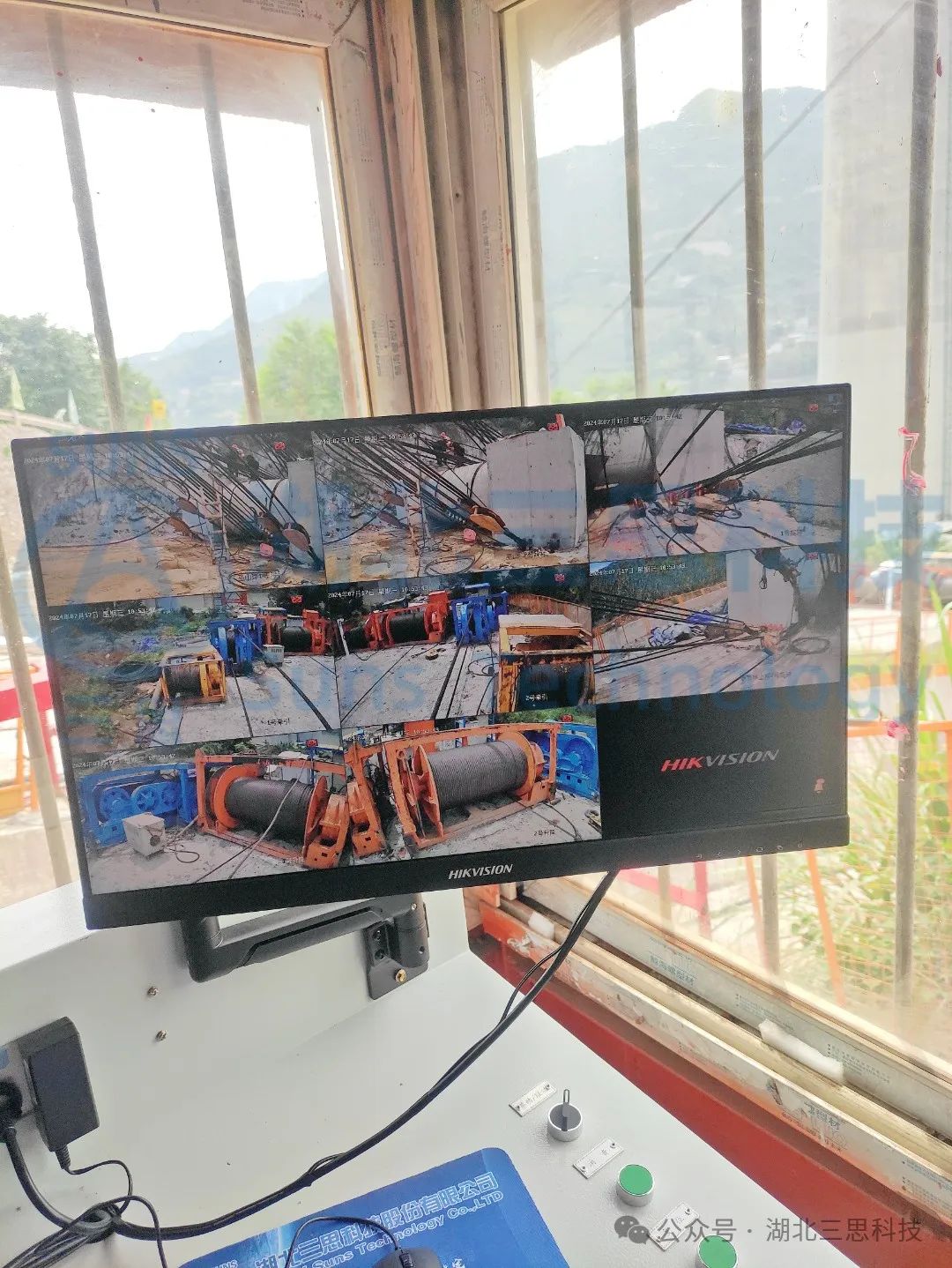 現(xiàn)場多臺(tái)槍機(jī)分別安裝在卷揚(yáng)平臺(tái)附近,監(jiān)視卷揚(yáng)的工作情況;兩個(gè)塔頂 各安裝多個(gè)球形攝像機(jī)用于鳥瞰纜索吊區(qū)域施工情況。