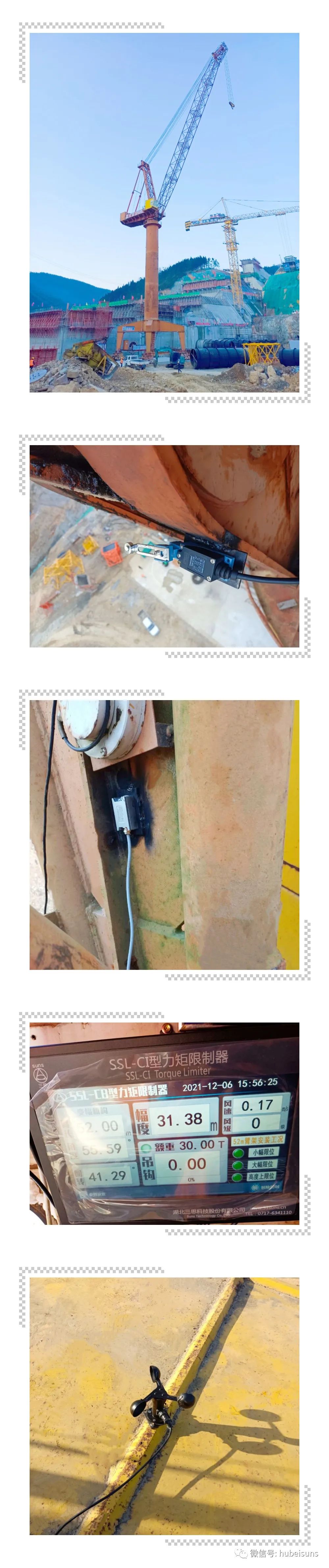 近日,湖北三思科技為該工程項目現(xiàn)場的門座式起重機配裝的力矩限制器已順利完工,目前各設備安全運行中。