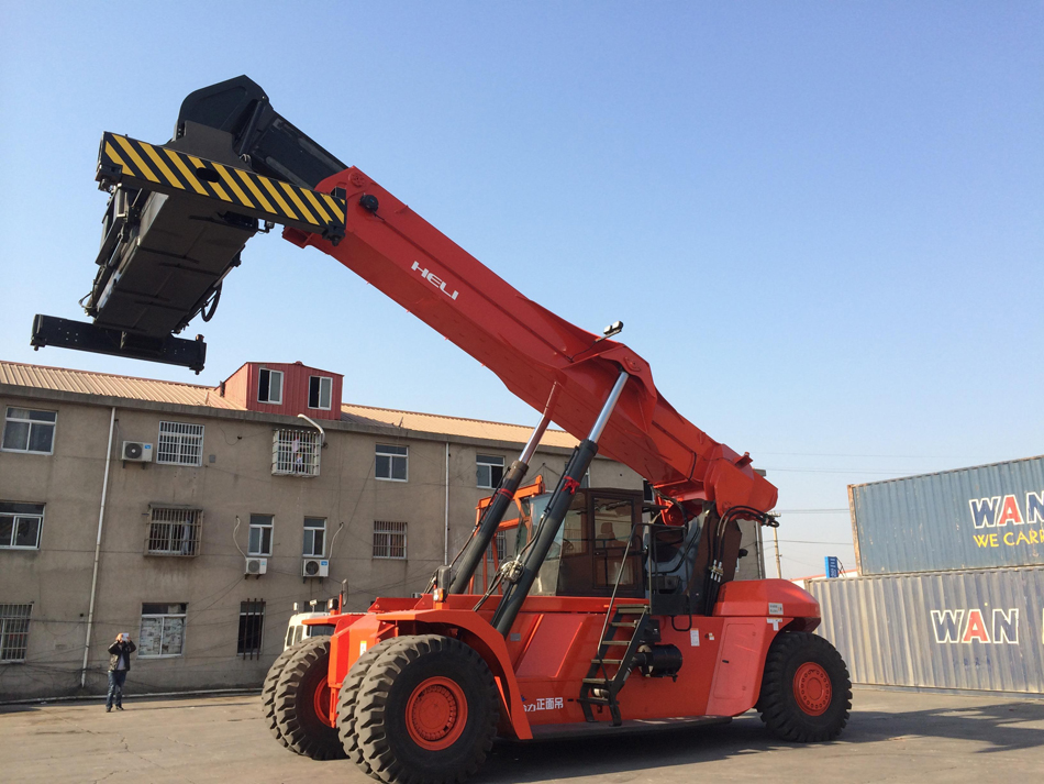 正面吊專門為20英尺和40英尺國際集裝箱而設(shè)計(jì)的,主要用于集裝箱的堆疊和碼頭、堆廠內(nèi)的水平運(yùn)輸,與叉車相比,它具有機(jī)動(dòng)靈活,操作方便,穩(wěn)定性好,輪壓較底,堆碼層數(shù)高,堆場利用率高等優(yōu)點(diǎn)。可進(jìn)行跨箱作業(yè)。特別適用于中小港口,鐵路中專站和公路中專站的集裝箱裝卸,也可在大型集裝箱碼頭作為輔助設(shè)備來使用。