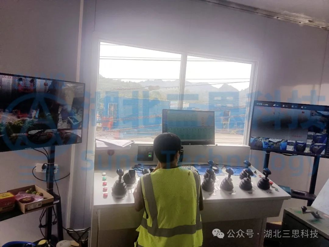 該橋江口、龍缸兩岸拱座均背靠在陡峭的山體,垂直于磨刀溪河施工現(xiàn)場,有滑坡危巖、巖石裂隙發(fā)育,現(xiàn)場施工場地狹小、危險系數(shù)高、施工難度大。因此,本項目纜索吊機采用了由湖北三思科技自主研發(fā)的纜索吊機集中控制管理系統(tǒng),使設(shè)備的操作方式由傳統(tǒng)的“一人控制一機”升級為“一人控制多機”,同時設(shè)備在運行過程中既可多機聯(lián)動,亦可單機獨動,為智能化安全管理提供有效保障。
