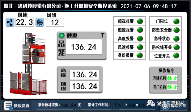 采用工業(yè)高亮度彩色液晶顯示器,10寸超大顯示界面,支持實時記錄重量、高度、風速、限位等數(shù)據(jù),并提供預(yù)警、報警信息,實現(xiàn)升降機的全方位保護。